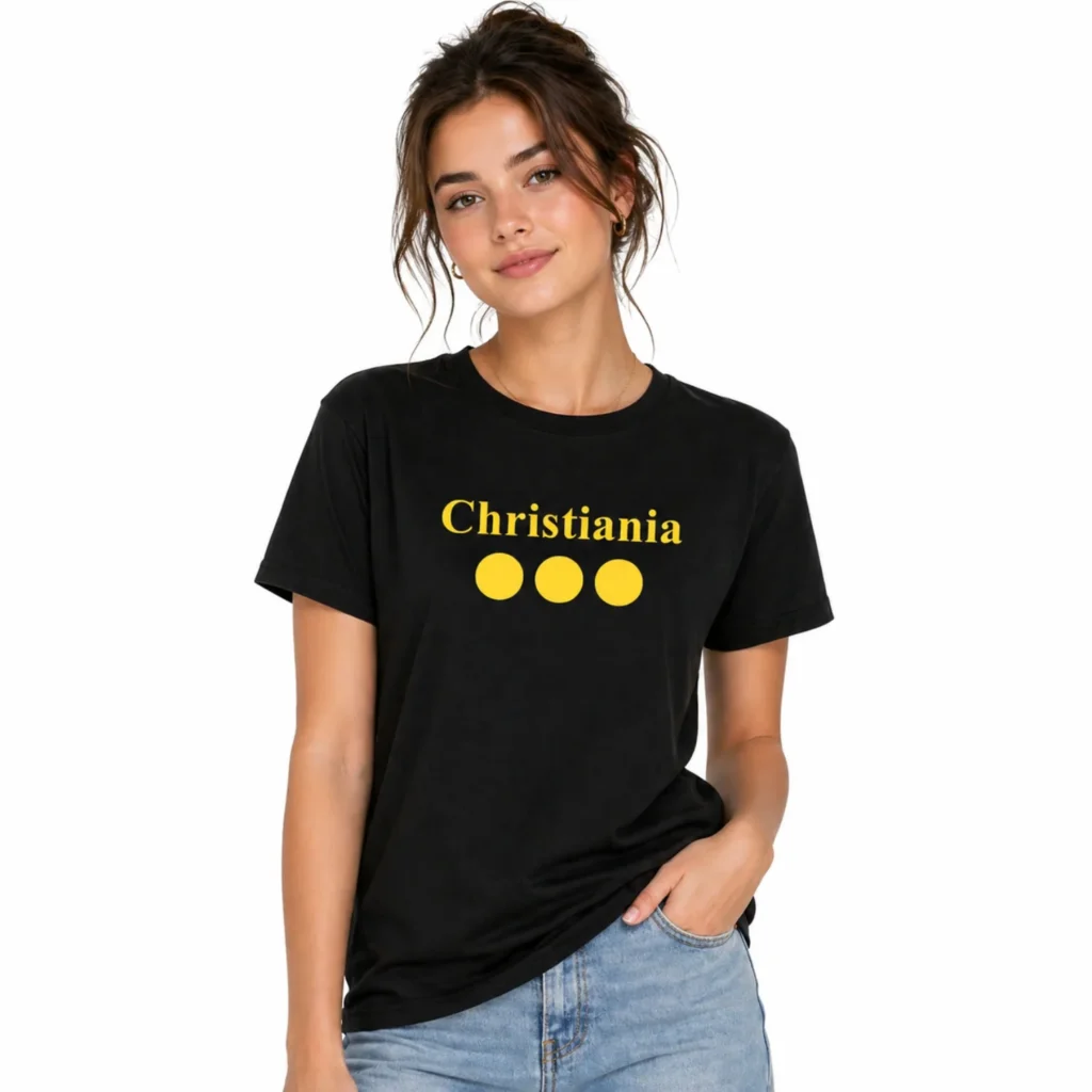 Christiania-logoet tilfører en ekstra dimension til T-shirten. Det symboliserer frihed, kreativitet og en alternativ livsfilosofi, som mange identificerer sig med. Ved at bære denne T-shirt viser man ikke kun sans for stil, men også en forbindelse til disse værdier. Det gør den til et statement piece, selv i sin enkle form.